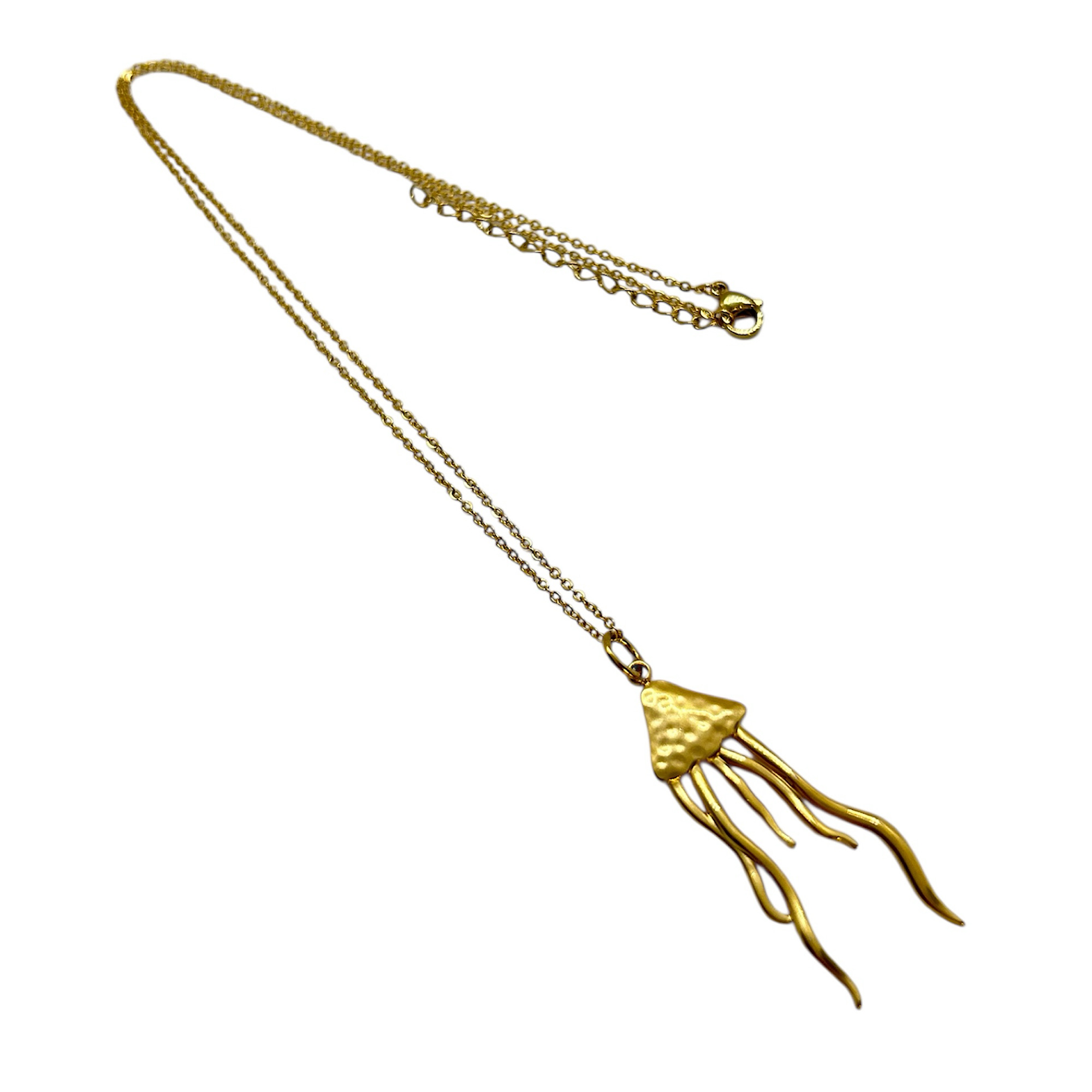 Κολιέ με ατσάλινη αλυσίδα σε χρυσό χρώμα μήκους 45 εκατοστών συν 5εκατοστά επέκταση και μέδουσα διαστάσεων 41*16mm.
