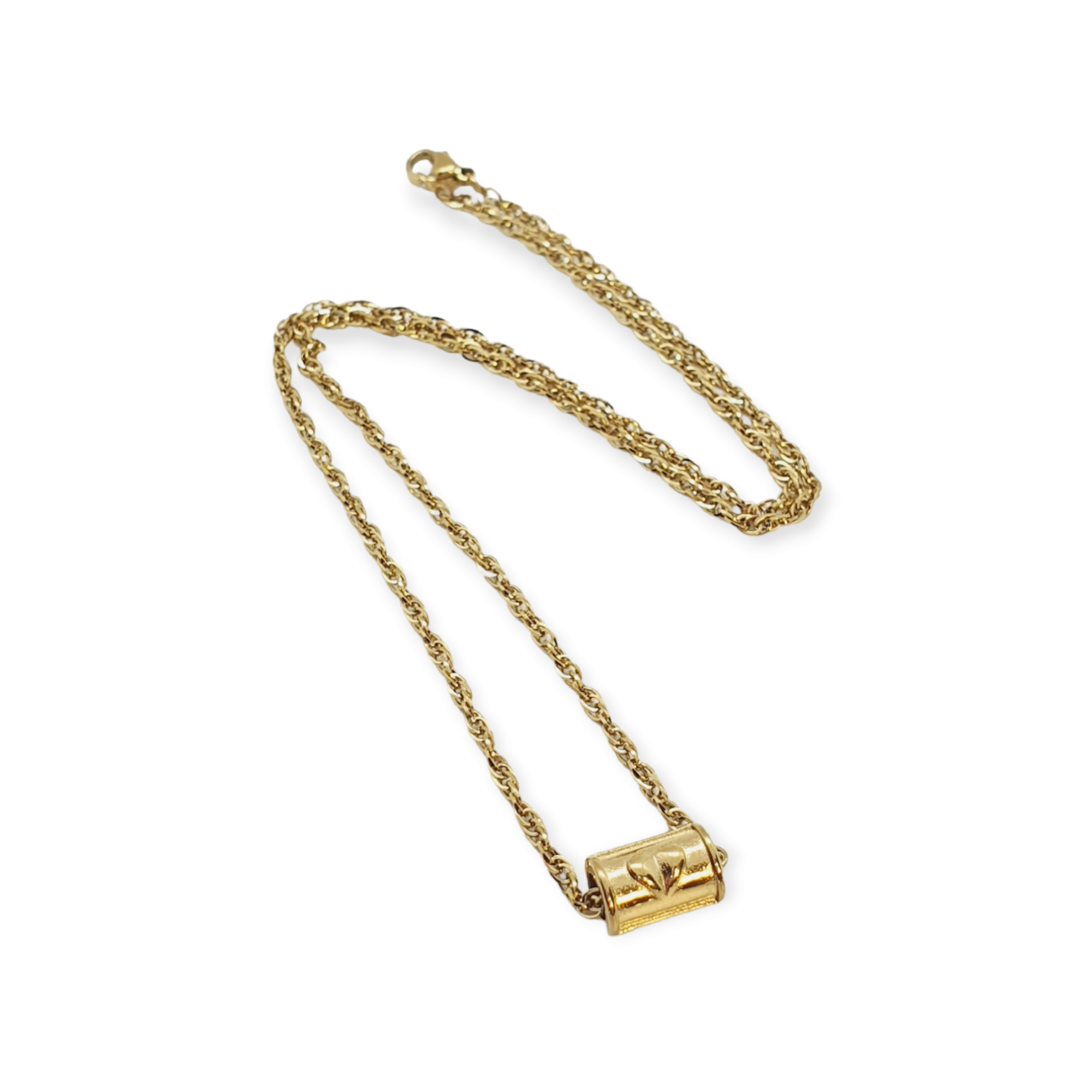 Κολιέ με ατσάλινη χρυσή αλυσίδα μήκους 50 εκατοστών και ατσάλινη ροδέλα με μία μικρή διακριτική καρδιά στο κέντρο της.
