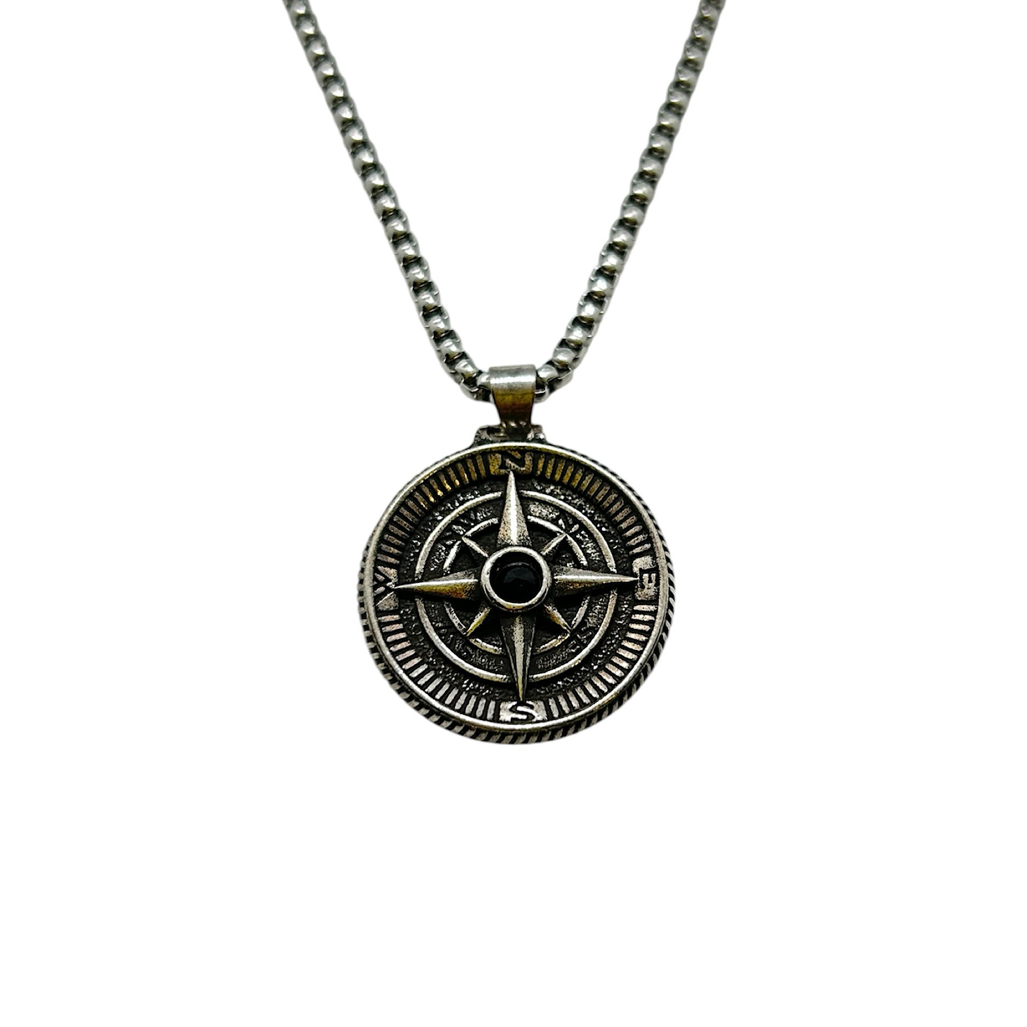 Product details 14,00 € In Stock SKU: 732 Silver metal necklace with compass. Add to Wishlist Add to Compare Back to: Necklaces Description Necklace with a silver colored metal chain 60cm long and a compass with a diameter of 25mm.