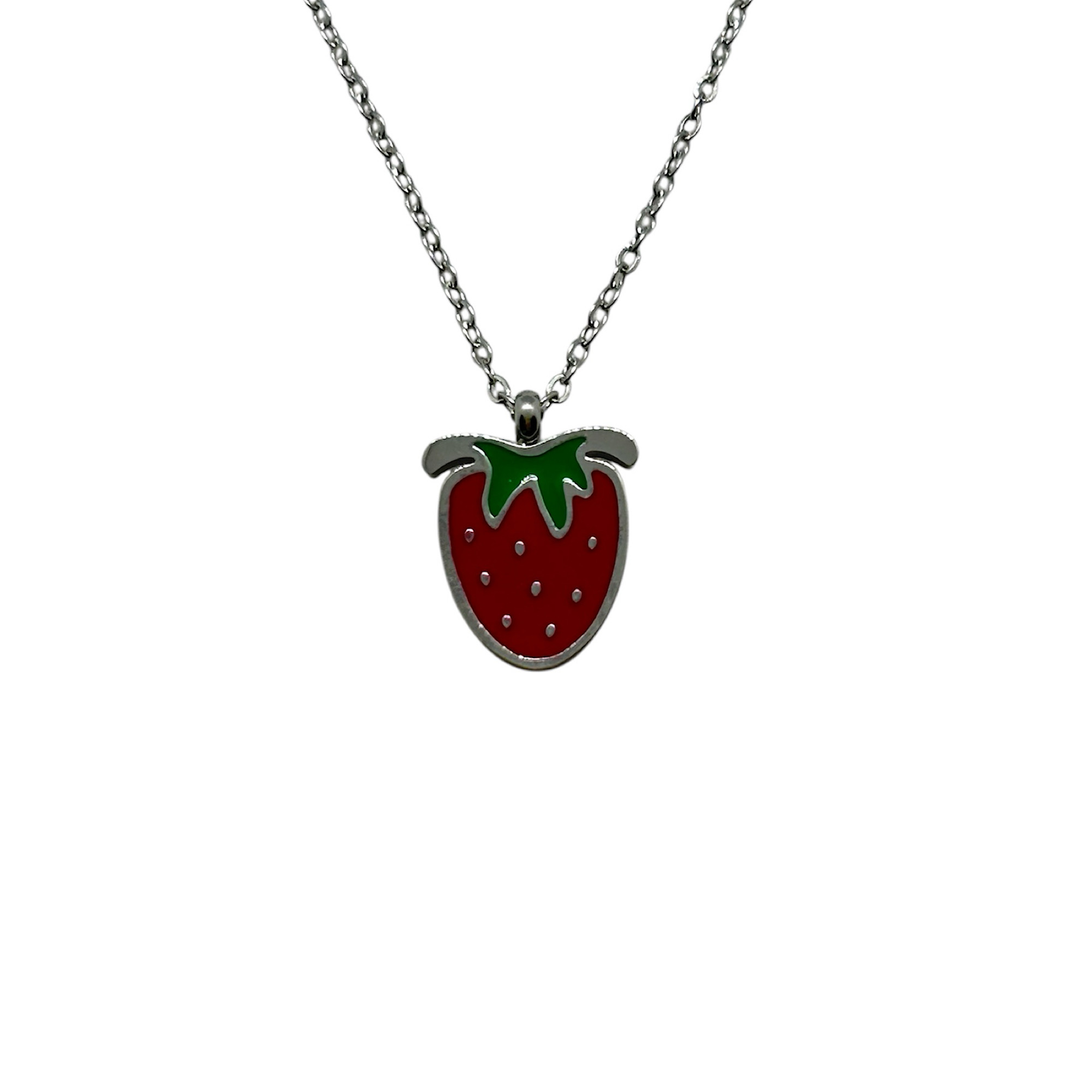 Product details 14,00 € In Stock SKU: 724 Silver steel necklace with strawberry. Add to Wishlist Add to Compare Back to: Necklaces Description Steel necklace with a silver colored chain 40cm long and 5cm extension and a stawberry measuring 10*13mm.